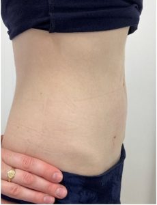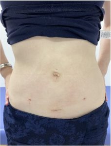 患者様と十分に相談のうえ、SCOLA(Subcutaneous Onlay Laparoscopic Approach)法による手術を行いました。術後は数日間ドレーンチューブを留置しましたが、術後の回復は順調で、腹部の状態についても良好な経過をたどりました。SCOLA法に伴う可能性のある合併症である漿液腫はごく軽度でした。※術後経過や効果には個人差があり、すべての方に同様の結果が得られるわけではありません。